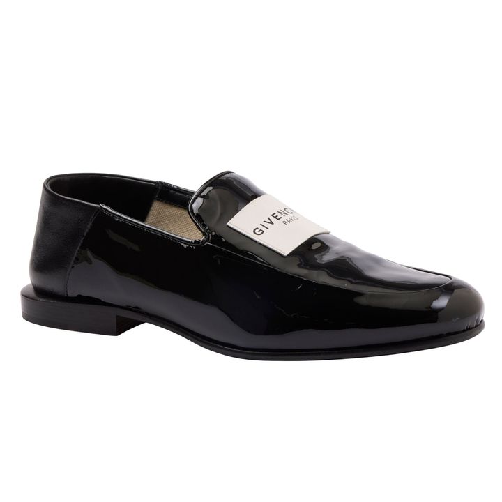 ブラックとホワイトのコントラストが際立つ、ジバンシィのローファー。アッパーとサイドには艶やかなエナメル加工を施し、かかとは柔らかなナッパレザーに切り替え。折りたためるデザインで、スリッポン感覚でも楽しめる。