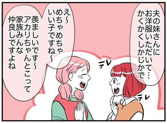 義妹に事情を伝え、“矢部さん”について教えてもらった主人公。とくに不審な点はないように思えたが、義妹の同級生だということを考えると、主人公の娘におさがりの服をあげられる年齢の子どもがいることに少し疑問が残る…