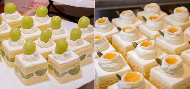 2種類のケーキには、京王プラザホテル伝統のショートケーキ生地とクリームが使われます。しっとりふわふわのスポンジに、滑らかで軽い口当たりのクリームが特徴です。しかもシャインマスカットがゴロリとサンドされ満足感たっぷり。いっぽうショートケーキとかぼちゃのプリンを合わせたハイブリットスイーツ “ショップリン” は、ケーキの美味しさと滑らかプリンが口の中でひとつに溶け合う一品です。秋を告げるカボチャの風味が口の中に広がります。