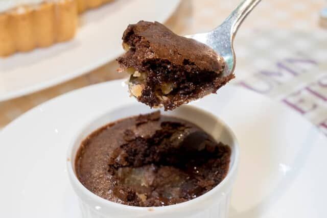 ホテルのスタッフから「ぜひ出来立ての熱々を試してください」と念を押されたのが「できたてマロンのフォンダンショコラ」。最高級と言われるフランスの料理用チョコレート “ヴァローナ社” のチョコレート2種類をブレンド。くどくなく甘すぎず、それでいて濃厚なカカオの風味が際立ちます。しかも出来立ては熱々のトロトロ。中に忍ばせた栗の味も満喫しました。
