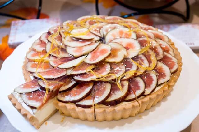 フレッシュなイチジクが驚くほど盛られた「いちじくのタルト」。アクセントにシロップ漬けのオレンジの皮がちりばめられ、ナチュラルで優しい味わいのイチジクがいつまでも印象に残ります。11月と12月は洋梨のタルトにかわりますが、そちらも期待大のメニューです。