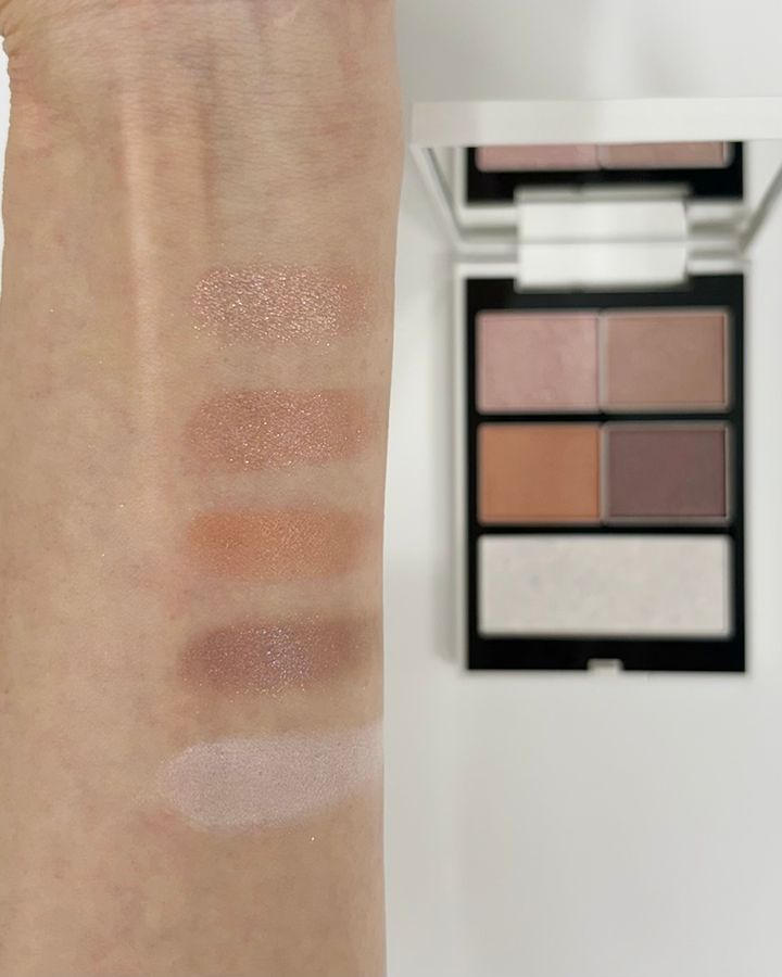 光の奥行きで自然な立体感を演出するアイカラーとフェイスパウダーのパレット。 アイカラーはグリッター、メタリック、サテン、セミマットの4つの質感がセット。 フェイスパウダーはセミツヤな仕上がりの“光らない”ブライトニングパウダー。