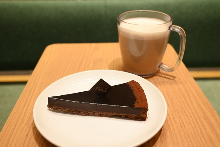 ペアリングの「アールグレイ ブーケ ディライト ティー ラテ」は、華やかに香り立つ3種の茶葉をブレンドしたティーラテ。"ブーケ"の名前の通り、口のなかでふわっと花が開くような味わいです。しっかりとカカオの余韻を感じるケーキと、ミルクのやわらかなコクがカカオの豊かさに調和して、ティーの深い余韻とともに、ゆったりとぜいたくなティータイムへと誘ってくれます。