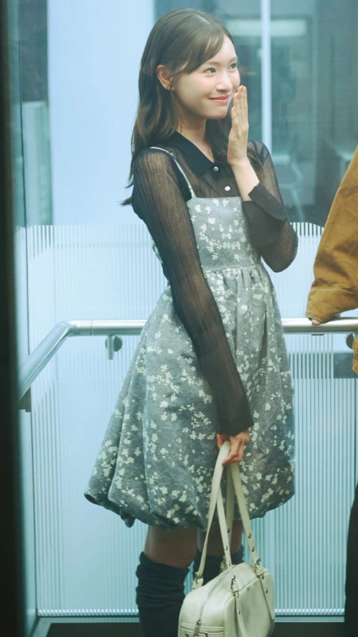 黒のシアートップスに花柄ワンピを重ねたオトナ可愛いコーデ。透け感でほどよい色気を添えて、デートにもぴったりな甘モードスタイルに♡