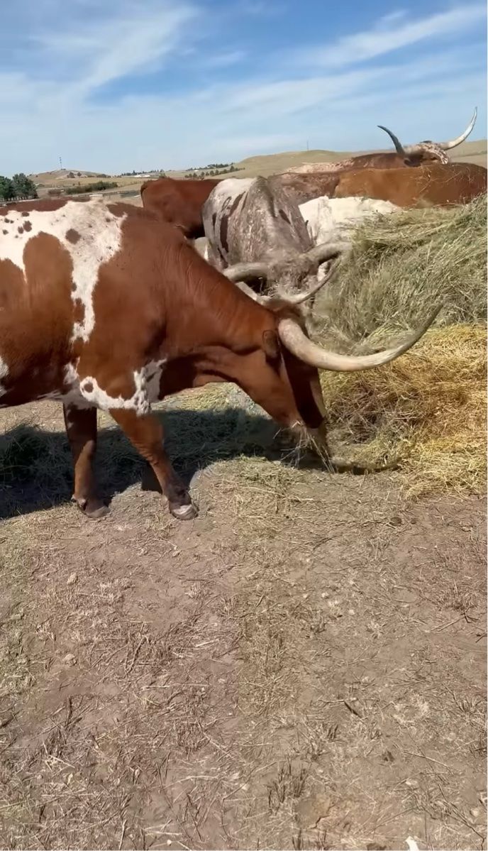 すると、この雄ウシは立派な角で干し草を思いきり突き差しました!