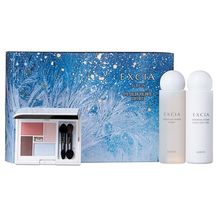 透明感を生むアイカラーパレットに、ハリツヤ肌を育む乳液&化粧水のミニサイズが。エクシア アイカラー ヴォロンテ コフレ ¥6,600(アルビオン)
