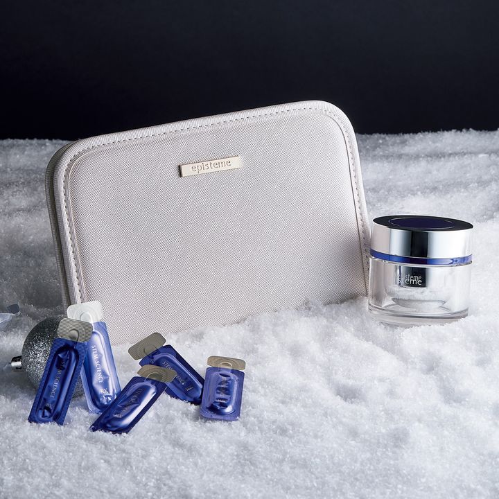 メインアイテムを3種類から選べるスペシャルなキット。今年9月発売の「ステムサイエンスリフトクリームC」の現品に、美容液「ステムサイエンスRXショット」のサシェット5包とオリジナルマルチケースつきのお得なセット。複合保湿成分を最高濃度で配合したクリームは、濃密なコクでハリ肌に導いてくれます。エピステーム ステムクリスマスキット (ステムサイエンスリフトクリームC)¥37,400(ロート製薬)