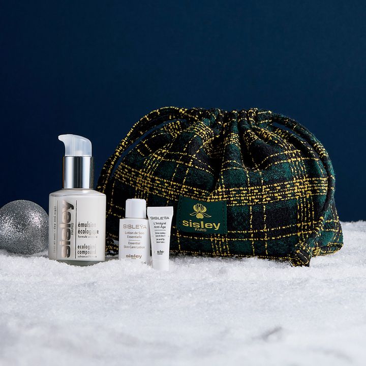 アイコニックな美容乳液「エコロジカル コムパウンド アドバンスト」の60mlを現品で購入すると、保湿化粧水「シスレイヤ エッセンシャル スキンケア ローション」とアイ&リップクリーム「シスレイヤ インテグラル クレーム コントゥール デ ユー」のミニサイズ、さらに収納力抜群の巾着型ポーチがセットでついてくるお得なコフレ。エコロジカル コムパウンド アドバンスト コフレ ¥22,000(シスレージャパン)