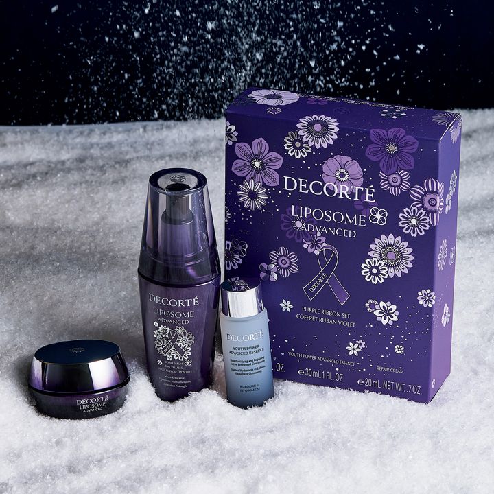 名品「リポソーム アドバンスト リペアセラム」の現品に、ナイトクリーム、新作の高機能化粧水のミニサイズをセット。あらゆる肌悩みを立て直す実力派コスメはこの時期の強い味方。「女性に対する暴力をなくす運動」に賛同した「パープルリボンプロジェクト」の限定デザインボックス入り。リポソーム アドバンスト リペアセラム パープルリボン セット 2025 ¥17,050(コスメデコルテ)