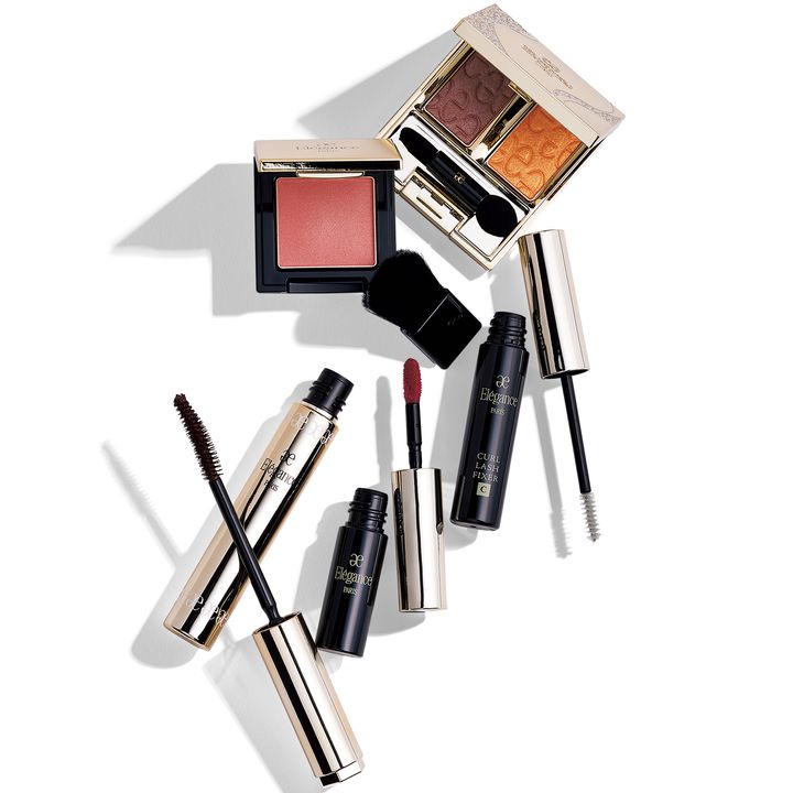 フランス語で「ひと目惚れ」を意味する名前がついた、優美なトータルメイクコフレ。2色が美しく溶け合うアイシャドウや、存在感のあるまつ毛に仕上げるマスカラとマスカラ下地、ぷるっとリッチな質感のルージュ、肌のトーンを問わずに使いやすいフェイスカラーがセット。エレガンス コフレ クードゥフードル ¥8,250(エレガンス コスメティックス)