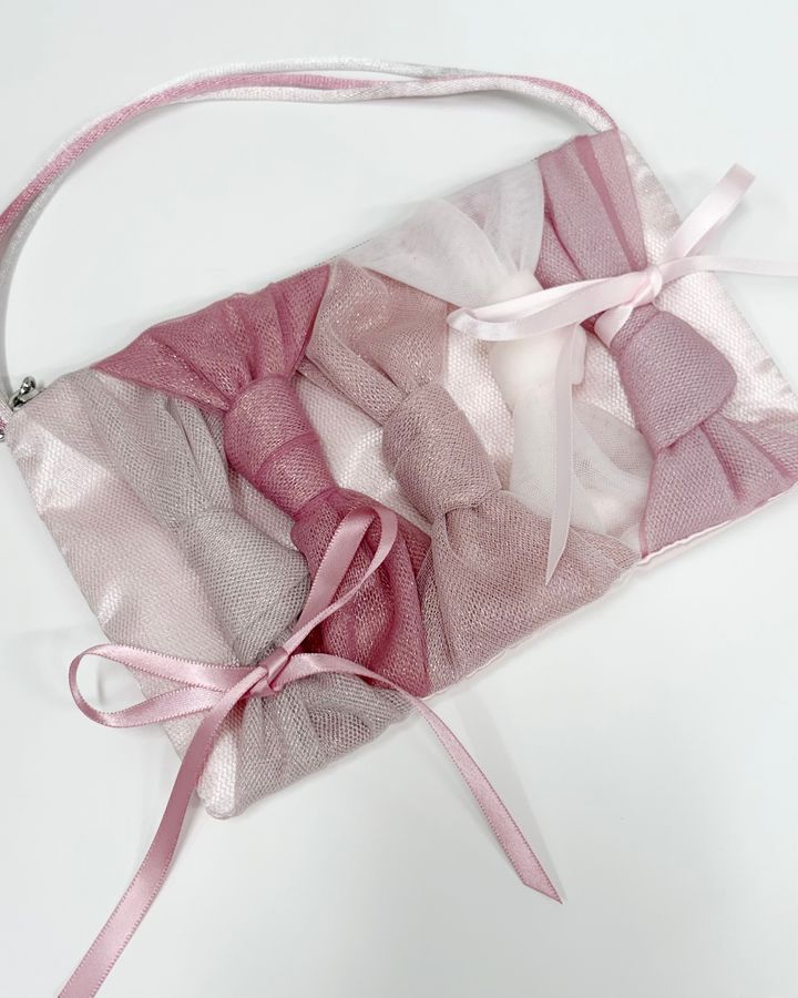 たくさんのリボンがあしらわれた、可愛いを詰め込んだようなポーチ
