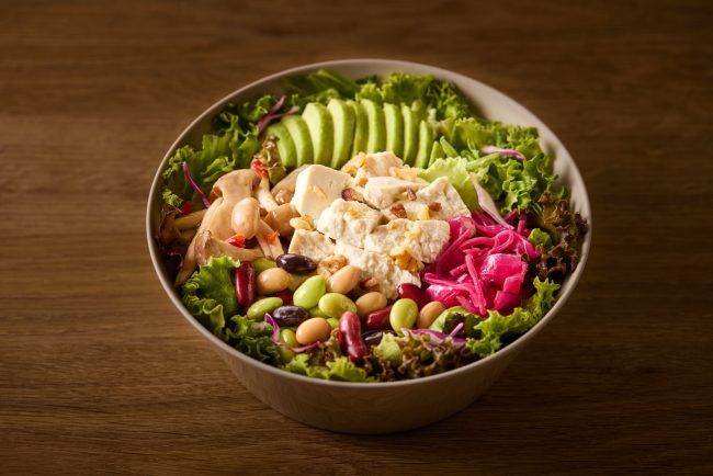 また、旅した気分になれそうな「石垣の塩と島豆腐のやさしい沖縄サラダ」+「石垣の塩と甘酒のドレッシング」、1日分に必要な350gの野菜が摂れる「16品目の一日分野菜サラダ」+「まるごとレモンドレッシング」、しっとり仕上げた鶏むね肉に卵などを合わせ、タンパク質が豊富で運動している人にふさわしい「みつせ鶏のコンフィとトマトのサラダ」+「北海道チーズとアンチョビのドレッシング」など、身体が欲しているサラダにも出会えそう。さらに、「季節のサラダ」は2種類、ベースのサラダ、トッピング、ドレッシングが自由に選べる「カスタムサラダ」もスタンバイ。肉や魚などのメイン具材と、旬の野菜や玄米・雑穀を合わせて、1品で満足できるお弁当のようなサラダが楽しめます。