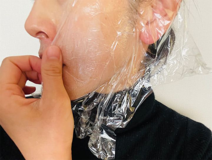 やり方は、小さめサイズのラップを、右頬、左頬、おでこ、と3箇所に分けて貼るだけです。