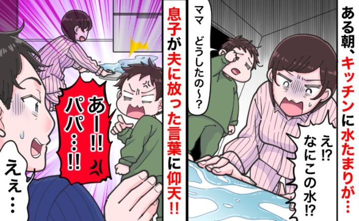 【一体なぜ?】朝、キッチンに水たまりが!「パパ、あかんなぁ」起きてきた夫に息子がビシッと指摘!