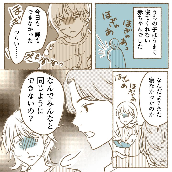毎晩眠れないわが子を抱え苦しんでいるママに、優しい言葉やねぎらいの言葉をかけるのであればともかく、冷たく現実を突きつける夫。この時点で神経を疑いたくなります。
