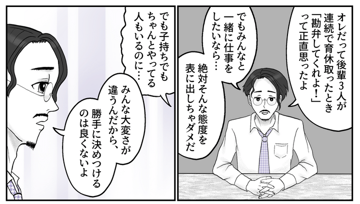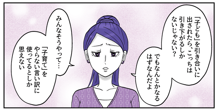 子どもをもつ人は、やらない言い訳に都合良く子どもを使っている……そんなふうに思っていた私。しかしヨウスケからは、それはただの決めつけだし良くない考え方だと諭されました。