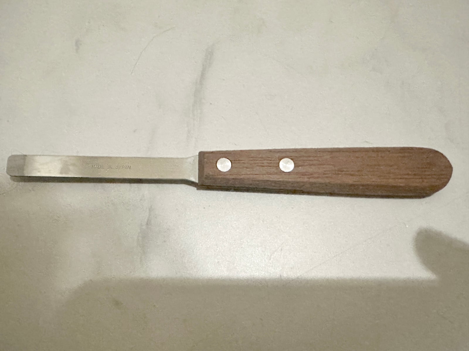 パッと見は細いスクレーパー(ヘラ)みたいですが、刃先は金属ではなく特殊樹脂製。しかも角がないので、鏡や蛇口に傷をつけにくいのがポイントです!