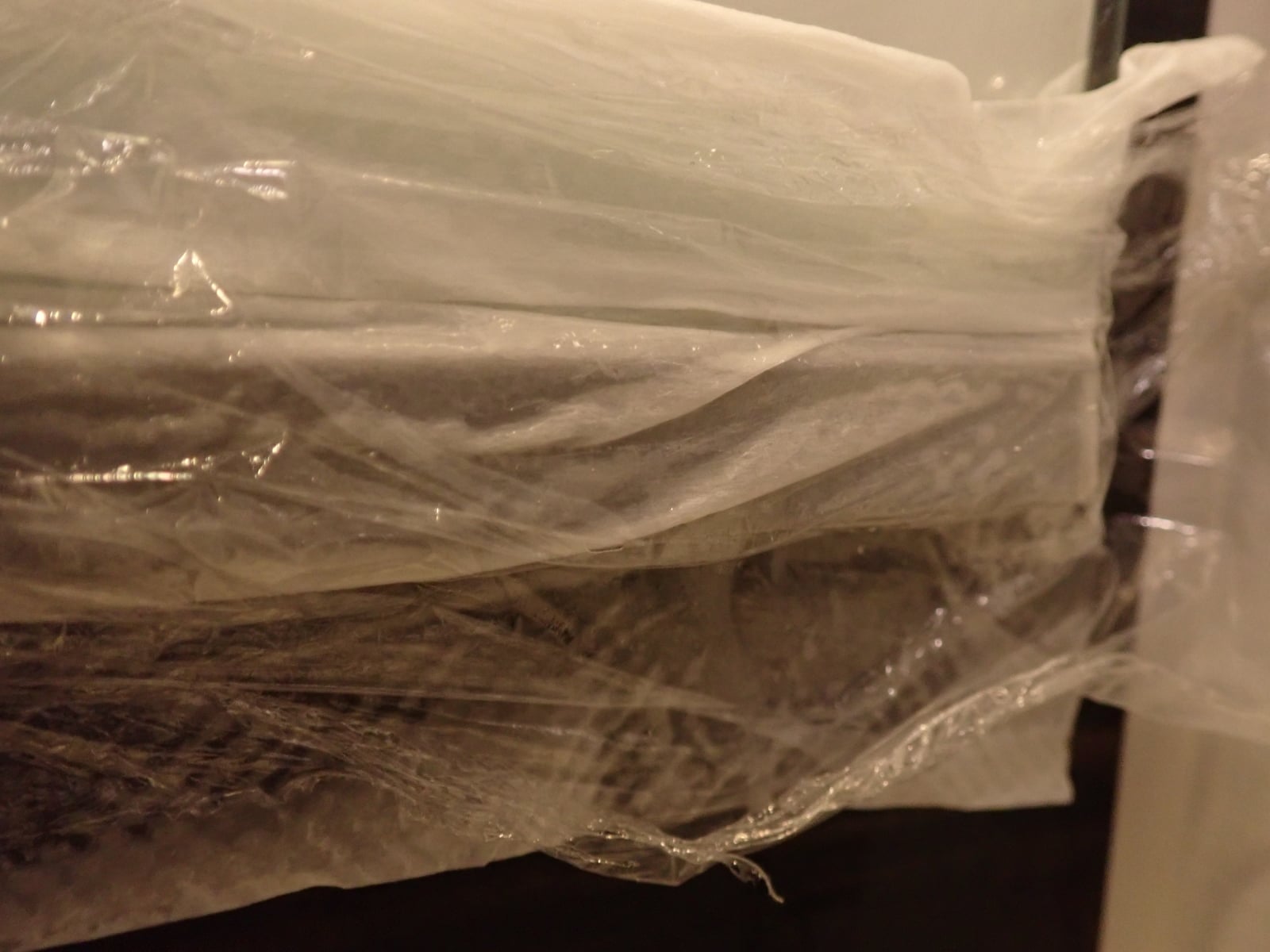 いきなりカリカリ落としを投入する前に、下準備をします。まずは、前に紹介した水アカ落としの定番「クエン酸パック」を行います。クエン酸水に浸したキッチンペーパーで、ターゲットとなる水アカをしっかりパック! そしてその上にラップを乗せてしばらく放置します。この下準備が大切で、乾いたまま行うと摩擦が強くなり、傷の原因になりかねません。ちなみにこのとき、妻から「またやってんの?」と言われましたが……無視です。無視!