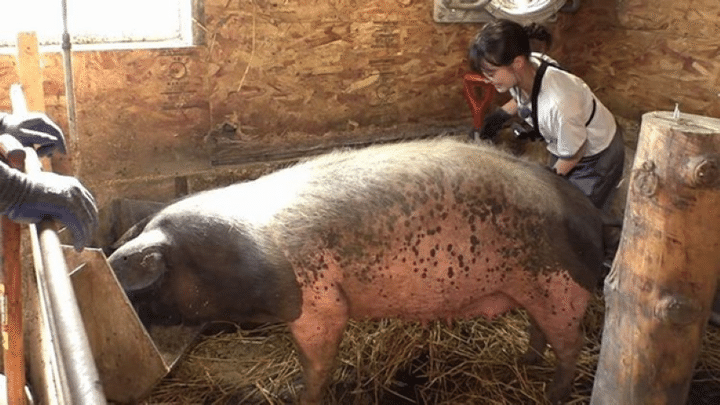 大きいブタさんたちのお世話に四苦八苦…!