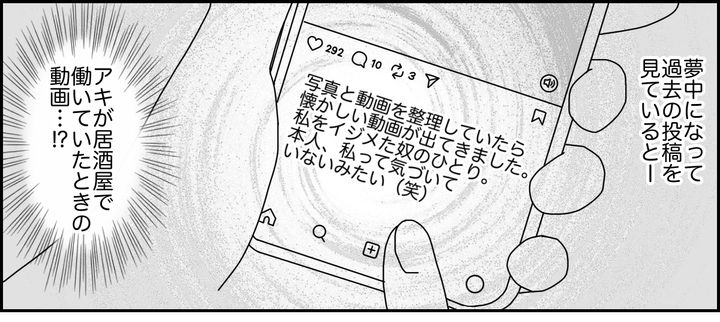 投稿された動画には、同級生のマドカの夫であるレンの姿が映っていました。彼は私たちの小学生時代の同級生であり、当時アキを一緒にいじめていた人物でもあります。