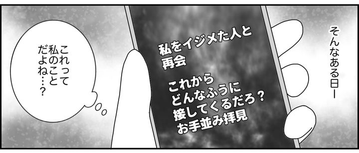 ある日、「私をいじめた人と再会。これからどんなふうに接してくるだろ? お手並み拝見」といった新しい投稿がありました。