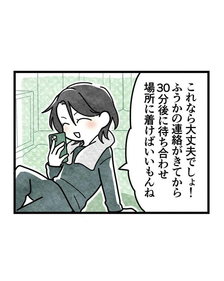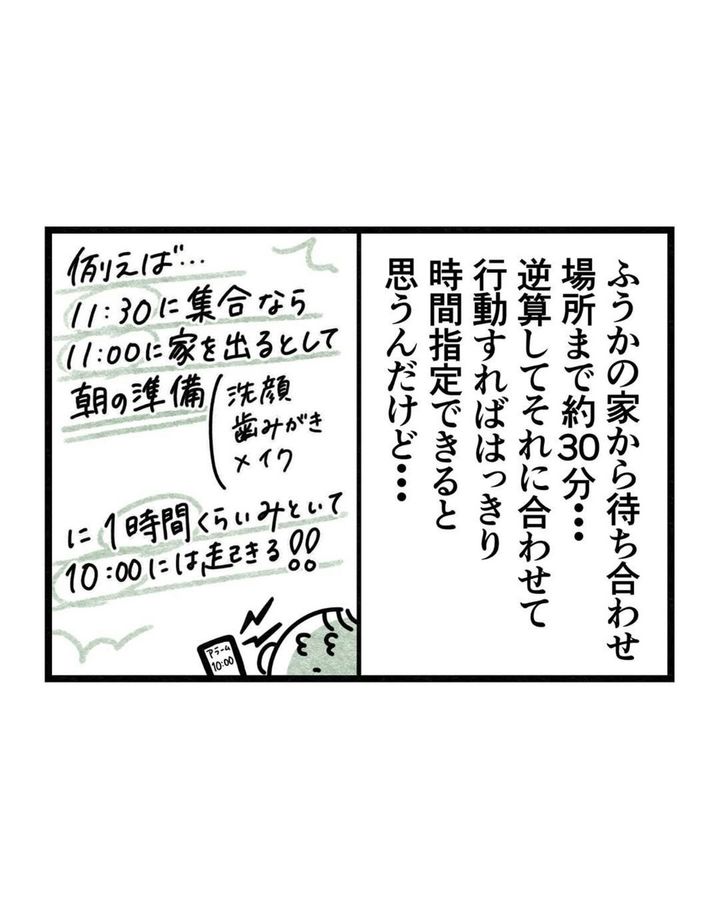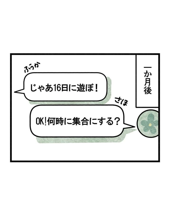 ただ、この時点ではふうかの遅刻のためにさほがふうかと友人関係を止めようとは思っていない様子。どうにか「お互いがストレスなく待ち合わせ場所に着けるように」ということでさほは「ふうかが家を出たら連絡をして」という対策を立てます。