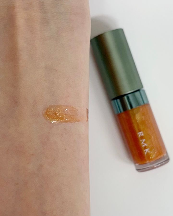 唇をうるおいで満たすリップ ルミナイザーの限定色EX-04 Sequin Juiceは、グリーンの偏光パールをたっぷり浮かべたジューシーなオレンジ。