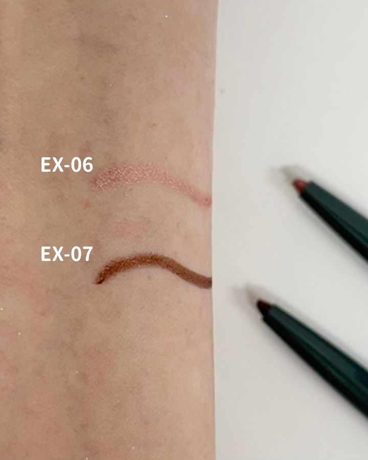 なめらかな描き心地のアイペンシルに限定2色が登場。 EX-06 Sweet Oblivionはシルバーパールがきらめくフレッシュピンク EX-07 Latte Luxeはブロンズピンクの光がほのかに輝くチェスナットブラウン