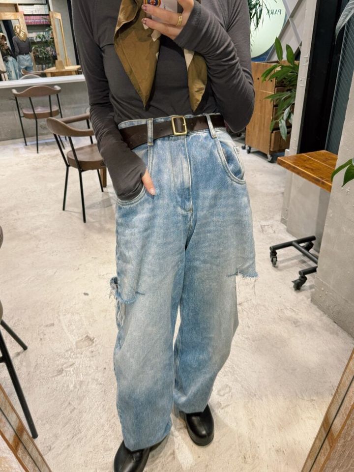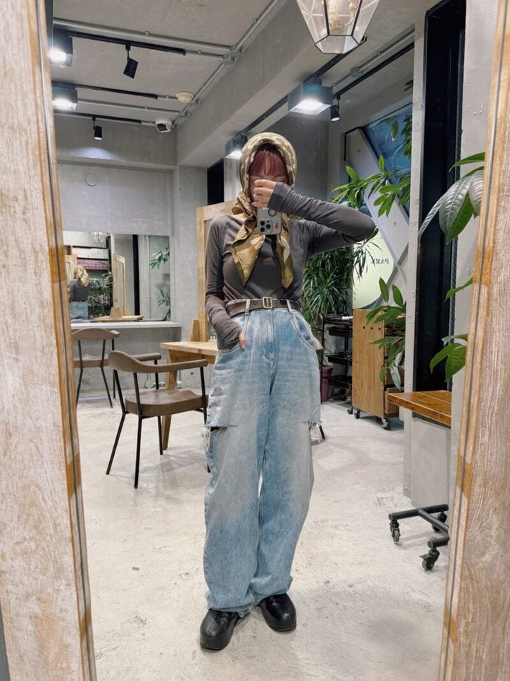 ロンTにデニムをあわせた、誰もが取り入れやすい着こなしは、小物使いがカギ。スカーフをヘッドアクセ風にひと巻きして、人とは被らないコーデに。ロンTやシューズもシンプルな色なので、鮮やかな色を差すことで、洗練度が上昇します。デニムがダメージ加工がされているルーズなシルエットなので、トップスはボトムにインして、すっきりと。