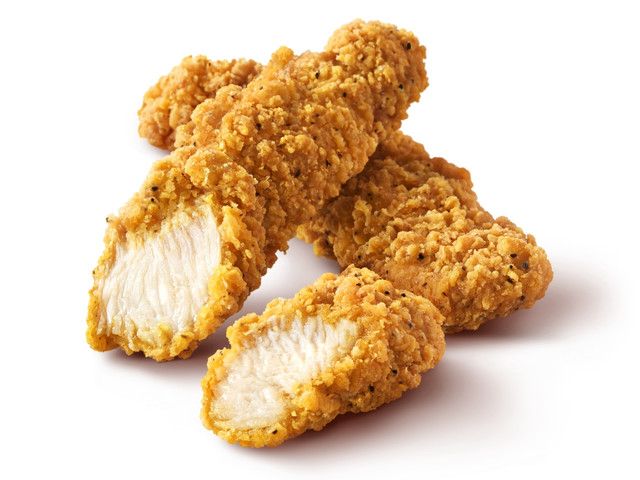 風味の良い粗びきブラックペッパーやガーリックなどで味付けしたしっとりジューシーな一枚肉の鶏肉と、サクサクした食感の衣が相性抜群の一品。 スティック状で食べやすく、2ピース入りでお手軽にお楽しみいただけます。 (店舗事に終売時期が異なる場合がございます)