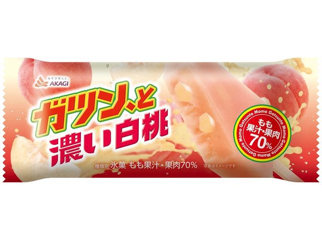 白桃果汁と白桃果肉の両方をガツン、と詰め込んだアイスです。 果汁・果肉70%使用し、食感も味わいも白桃を存分に楽しめる、白桃好きにはたまらないアイスに仕上げました。白桃の濃くジューシーな味わいで、瞬間気分爽快っ!になることができます。