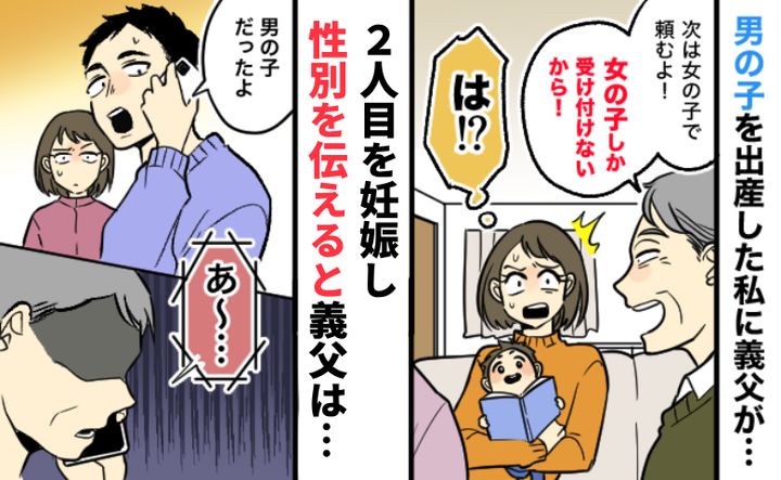 「次は女の子で頼むよ!」長男を出産した私に冗談を言う義父。次男を妊娠すると…さらなる耳を疑う発言を!?