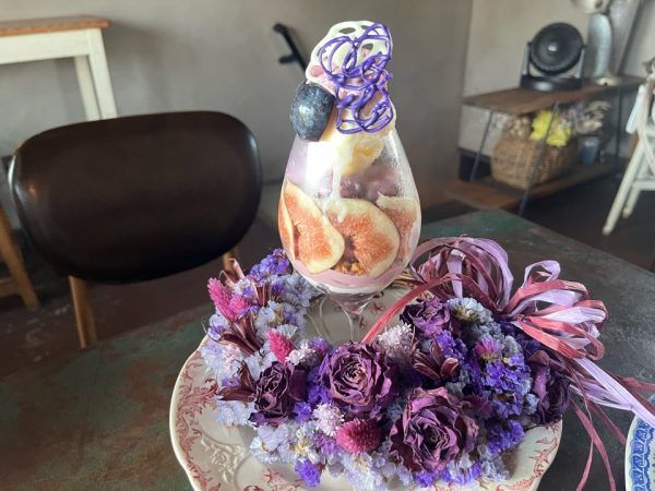 パフェは、ブドウとイチジクの紫パフェでした。 ガレットもパフェもとても凝っていて豪華なのですが、優しい甘さのイチジクとほっこりとした甘さが魅力的な紫芋のおいしさが ぎゅっと詰まった品々で大満足でした!
