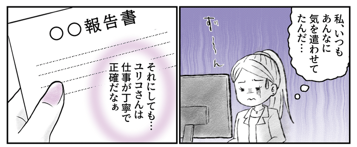 私に話しかけてきたユリコさんは、とてもビクビクして何を言われるのかと怯えているようでした。私、そんなに気を遣わせていたんだ……。寄り添うような言葉をかけると、ユリコさんは何度も頭を下げて自分の席に戻っていきました。