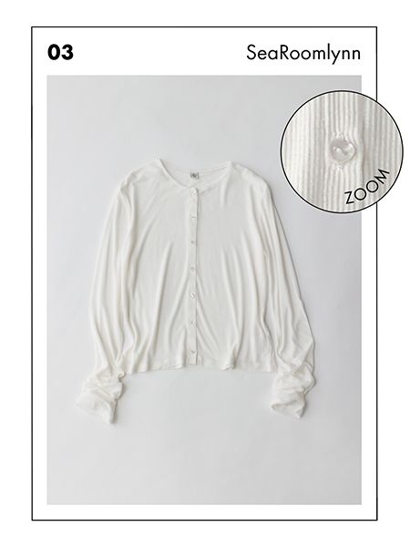 白シアーリブ2wayカーディガン/SeaRoomlynn 透ける白でも緊張せずに着られる、ゆるめのフィット感。肌の上をすべるソフトな風合いが、とりこになる心地よさ。
