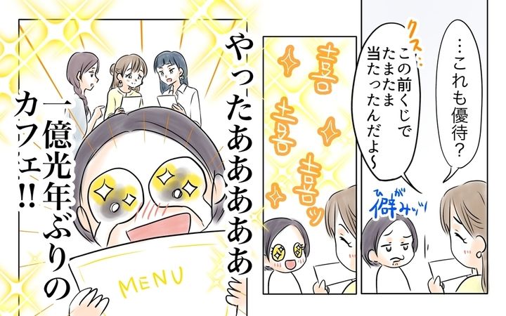ある日、ママ友のひとりがカフェの割引チケットがあるからと誘ってくれて…。