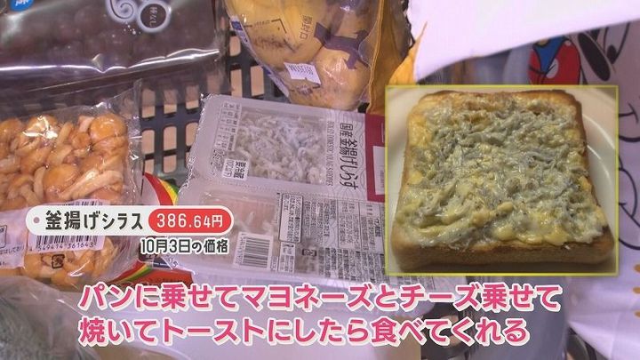 亜由美さん:「しらす買ってもいいですか?これもこの子の好物なので。パンに乗せてマヨネーズとチーズをのっけてトーストにすると食べてくれる」