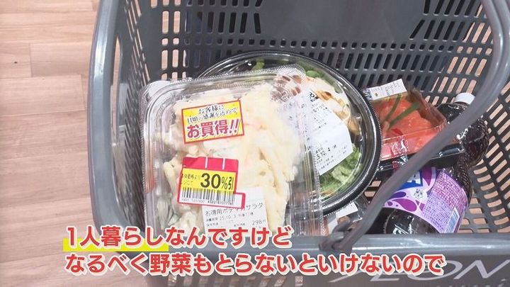 菊地さん:「一人暮らしなんですけど、なるべく野菜も摂らないといけないので、野菜も入れつつ肉もがっつりって感じ」