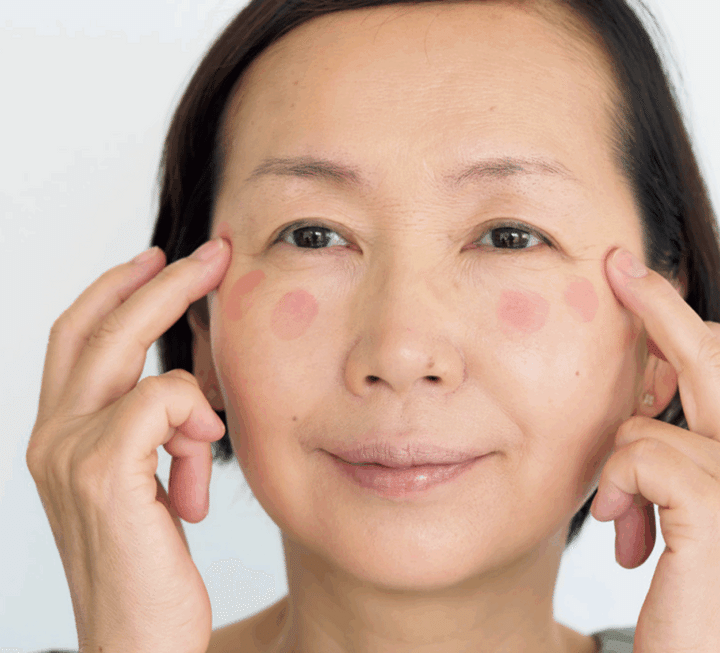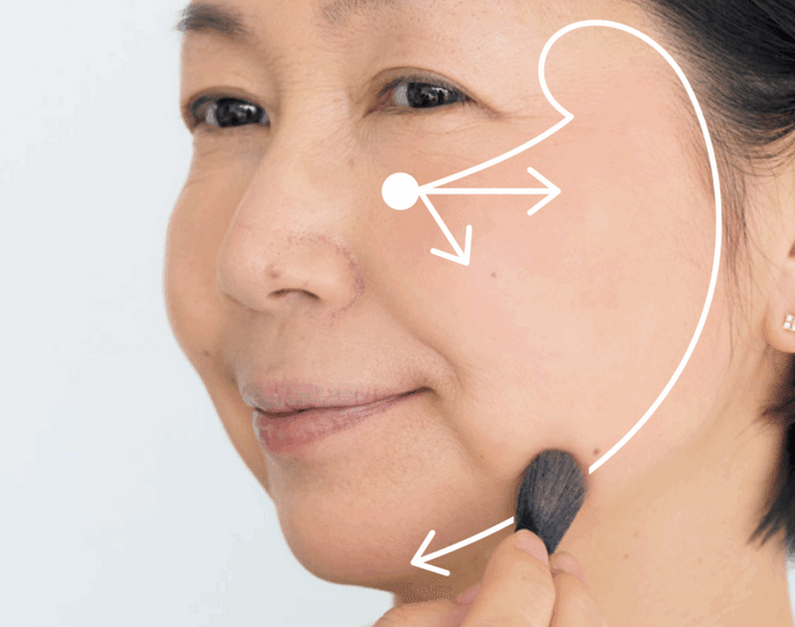 「最後に起点にクルクル。血色と立体感を出すつけ方です」