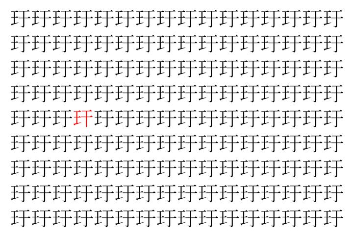 画像の中には、「玗」という漢字が縦に9行、横に16個並んでいます。 全部で144個となりますが・・・、そのうち1つは「異なる漢字」となってますよ!!