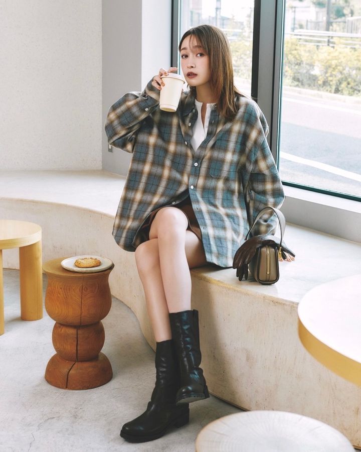 11月3日(月)、大きめシルエットのチェックシャツでリラックス感を出した、秋のカフェスタイル。シャツの裾からチラッと覗くスウェード調のミニスカートが、フレンチムードなボヘミアンルックを完成させてくれます。「上ゆる×下すっきり」のバランスで今っぽさを演出しながら、小ぶりなレザーバッグでリッチな印象に。抜け感と女性らしさがちょうどいい、休日のお出かけコーデです。