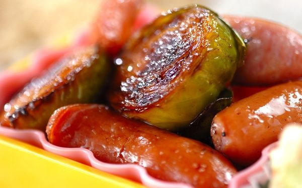 ワイン蒸しはお弁当のおかずにもなりますよ。ソーセージと芽キャベツを炒めて白ワインで蒸すだけ。簡単調理なので、忙しい朝もサッと作れます。芽キャベツの代わりに普通のキャベツを使ってもおいしいです。サンドイッチやパスタ弁当の副菜にぜひお試しください。
