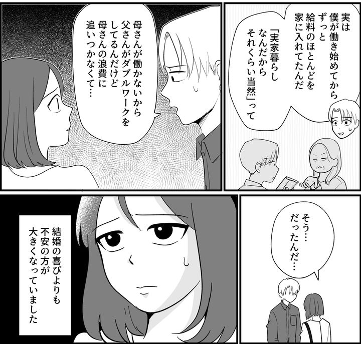 「で、結婚してももちろんお金は入れてくれるのよね? 今まで通りソウタが実家を支えるのよね?」ソウタはただオロオロするばかり。私は異様な雰囲気に強い不安を覚えました。