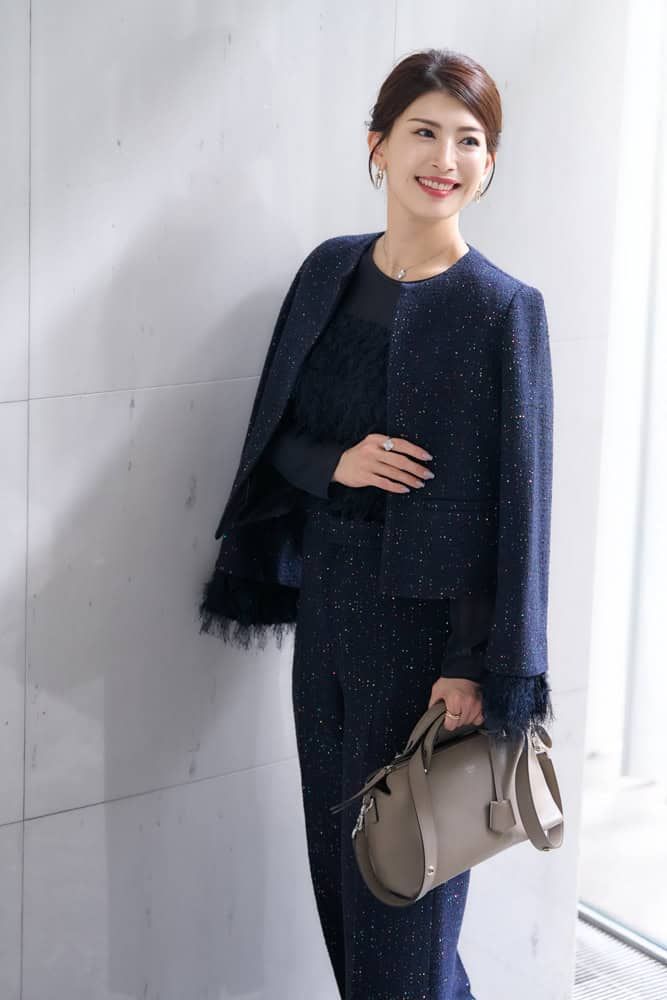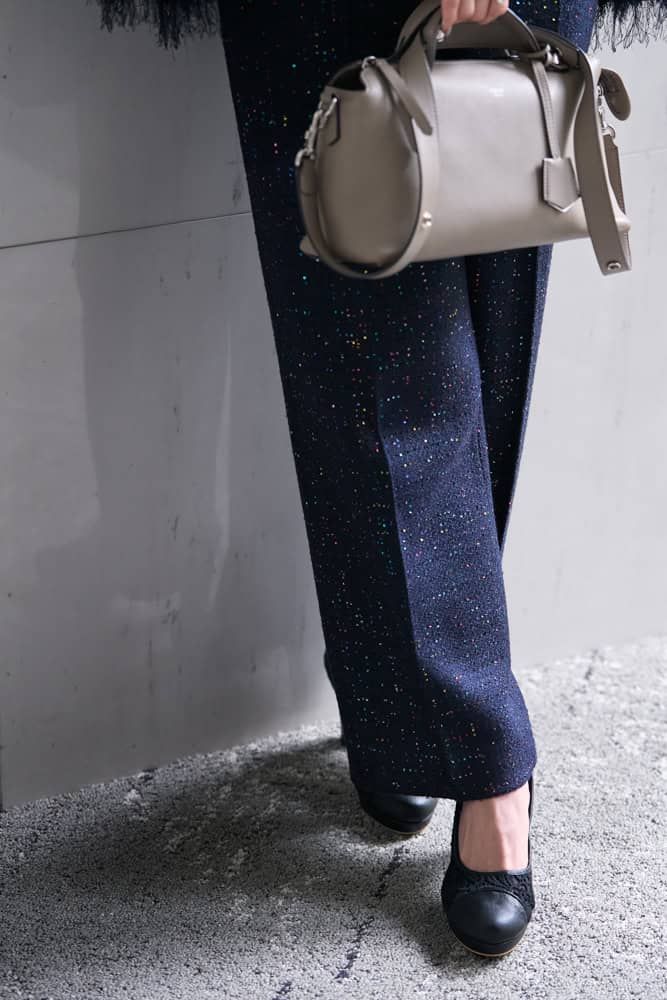 ツイード×フェザー×カラフルなスパンコール使いが華やかで、人と被らないところがお気に入りのセットアップ。昼と夜とで違う雰囲気を演出できたり、別々に着まわせたりと効率的なところも私好み。コーディネートは着ていく場所や印象付けたいイメージに合わせて戦略的に考えているので、必然的に「デキる女」風の華やかなアイテムが多いです。周りからも「指揮官にしか見えない!」と言われるほど、性格もファッション傾向も自他共に納得の結果でした。