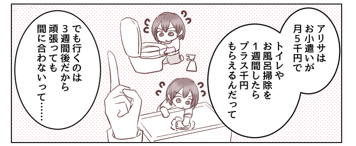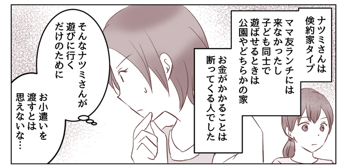 アリサちゃんは毎月のお小遣いでやりくりするよう言われて、結局それ以上は出してもらえなかったそうです。ナツミさんの今までの行動を考えるとそれも納得できます。そもそも、人付き合いをあまり大事にしない方なのかもしれません。