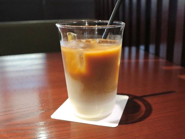 アイスのカフェオレをオーダー。混雑ながらもスタッフさんのてきぱきとした対応で、10分後にはドリンクとプレートが運ばれてきました!