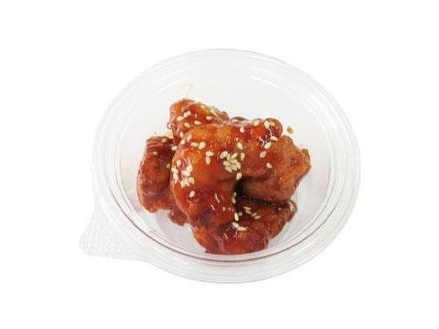 コチュジャンやリンゴ果汁、ごま油などを使用した甘辛いヤンニョムだれをからめたチキンです。
