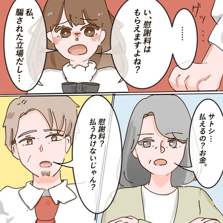 「・・い、慰謝料はもらえますよね?私、騙された立場だし・・」アイさんの言葉に、「サトシ・・払えるの?お金」私がそう言うと、「慰謝料?払うわけないじゃん」夫が平然と言いました。