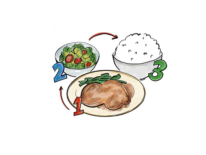 以前、ダイエットや血糖値の上昇を抑える方法として、食事の初めに野菜を食べる「ベジファースト」が流行りました。しかし近年は、最初に脂質とたんぱく質を食べ、次に野菜、最後に炭水化物を食べるほうが、より食後高血糖を効果的に抑えられると考えられています。