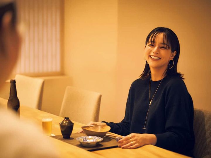 『ここ数年の恒例は、大好きな和食屋さん〝小熊〟でのお食事会。春夏秋冬の年4回、伺うのが一番のご褒美時間になっています。カウンター越しに「今年は松茸が立派ですね~」なんて、料理長と旬の食材の話をしながらしっぽりと季節を食します。華やかに着飾るというより、上質で着心地のいい服に包まれたいのでシンプルなカシミアのセットアップをチョイス。極上の着心地が心身共に、Special時間を盛り上げてくれます。』